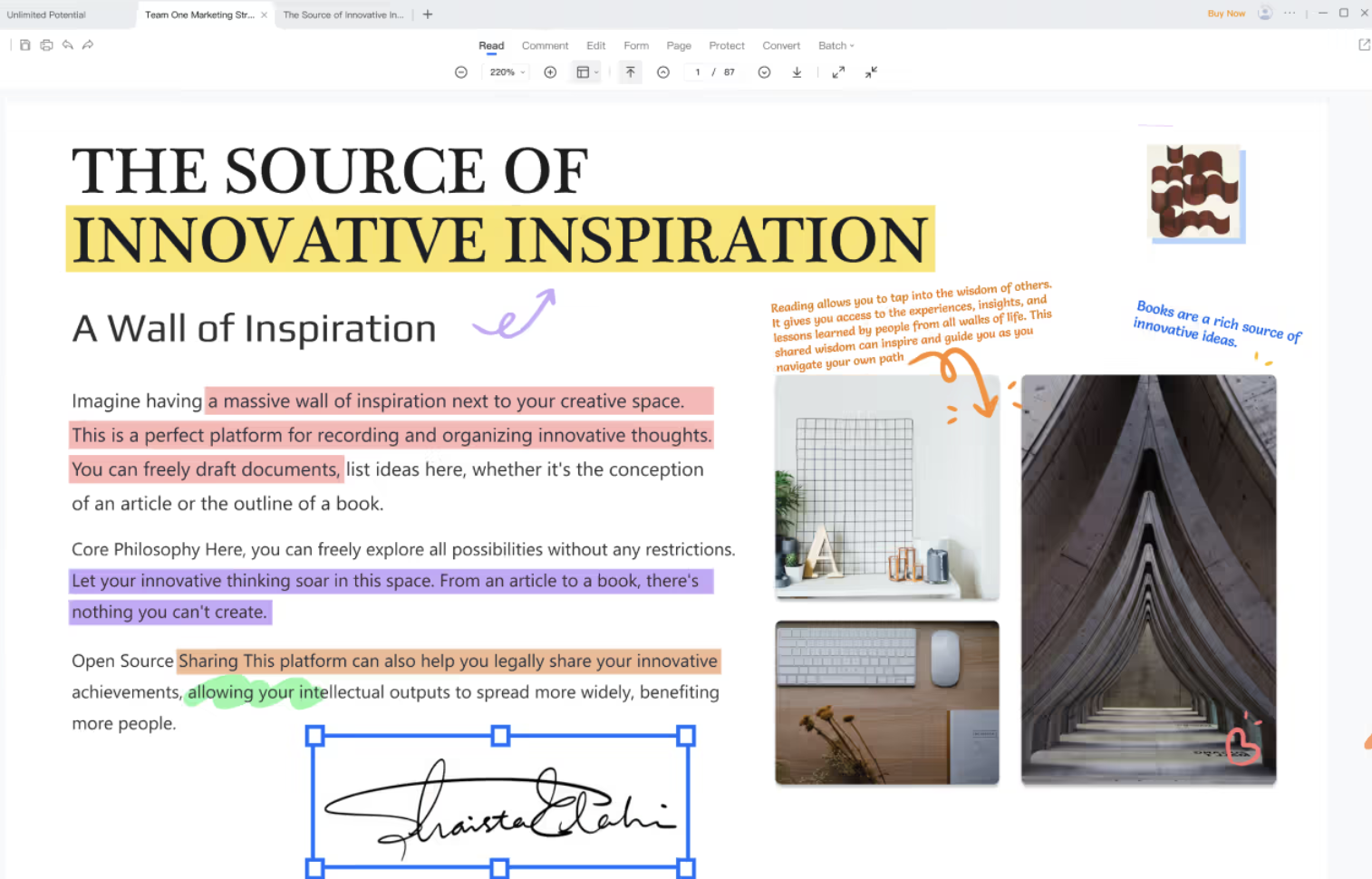 与此同时,轻闪PDF 还集成了强大的批注和标注功能,用户可以轻松地在文档中添加注释、划线和高亮等,方便与他人共享和讨论文档内容。这一功能尤其适合团队合作或学术交流,用户能够在文档之间留下重要的见解和建议,提升协作效率。此外,软件支持对PDF页面进行灵活的管理,用户可以轻松插入、删除、裁剪和旋转页面,使得文档结构更加合理。同时,对于需要从PDF文件中提取信息的用户,轻闪PDF还提供了文字和图像提取功能,用户可以快速获取所需的信息,并能够将提取的内容复制到其他文档中使用。