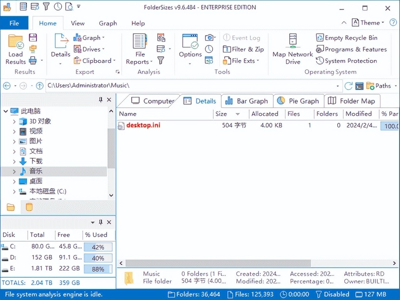 提供图表显示功能,直观展示文件夹大小和占用情况。