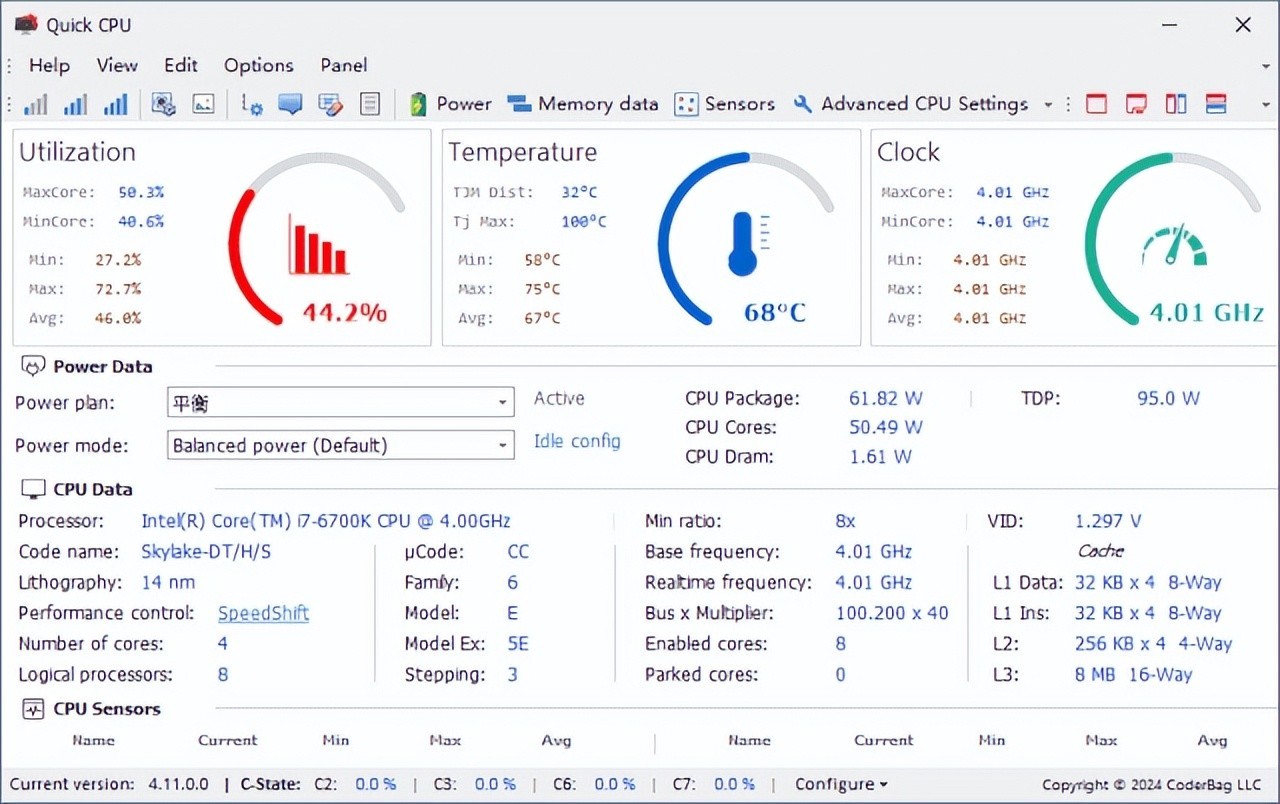Quick CPU 绿色便携版 – CPU性能调整优化软件是一款专为希望提高电脑性能的用户设计的工具。通过这款软件,用户可以实时监控 CPU 的各项参数,包括核心温度、频率和功耗等,从而对系统的运行状态进行详细分析。它提供了直观的界面,用户可以轻松查看各个核心的工作负载,这有助于识别系统瓶颈并进行相应的优化。除了监控功能,Quick CPU 还允许用户通过调整 CPU 的性能配置来提升计算机的响应速度,从而满足日常工作的需要,例如玩游戏、视频编辑等高强度任务。