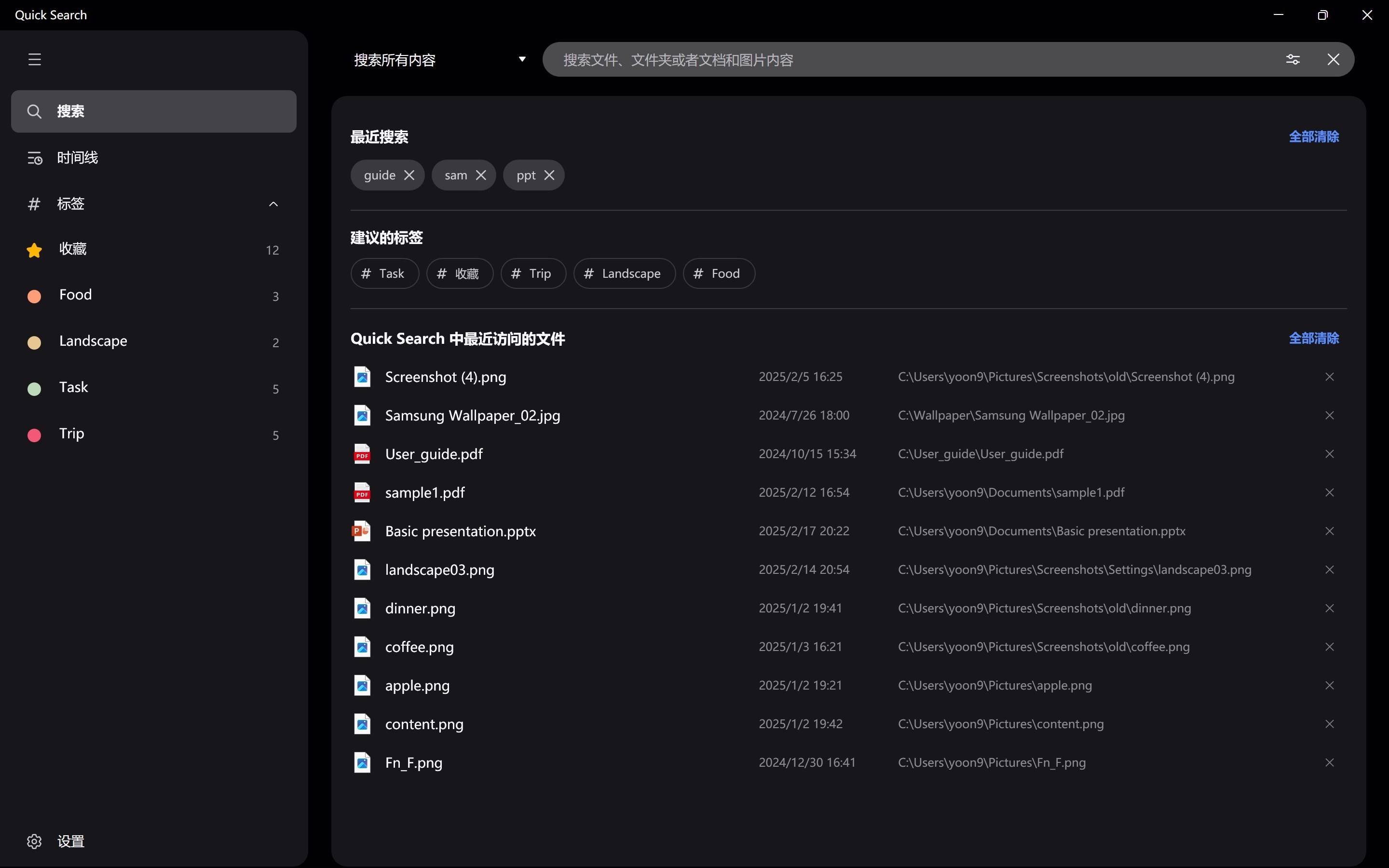 1. 快速搜索:支持快速搜索计算机上的文件、文件夹、应用程序、网页等内容;