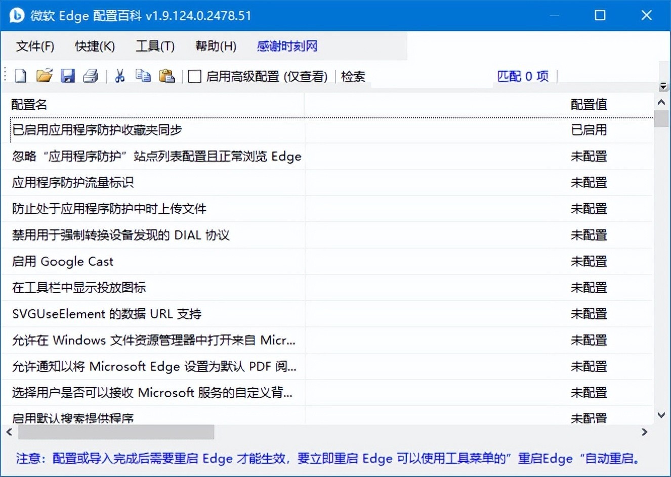 最新发布的v1.9 新版已支持 124.0.2478.51 版Edge的新增配置,对整体性能作了更多优化。支持配置导入导出和初始化操作,导出的配置既可以作为备份使用,也可以作为配置模板进行跨计算机批量应用,加入的新建初始化功能可以让你在配置不当的时候恢复出厂设置,现在你可以多次尝试各种配置,发现不满意就初始化从头再来吧。