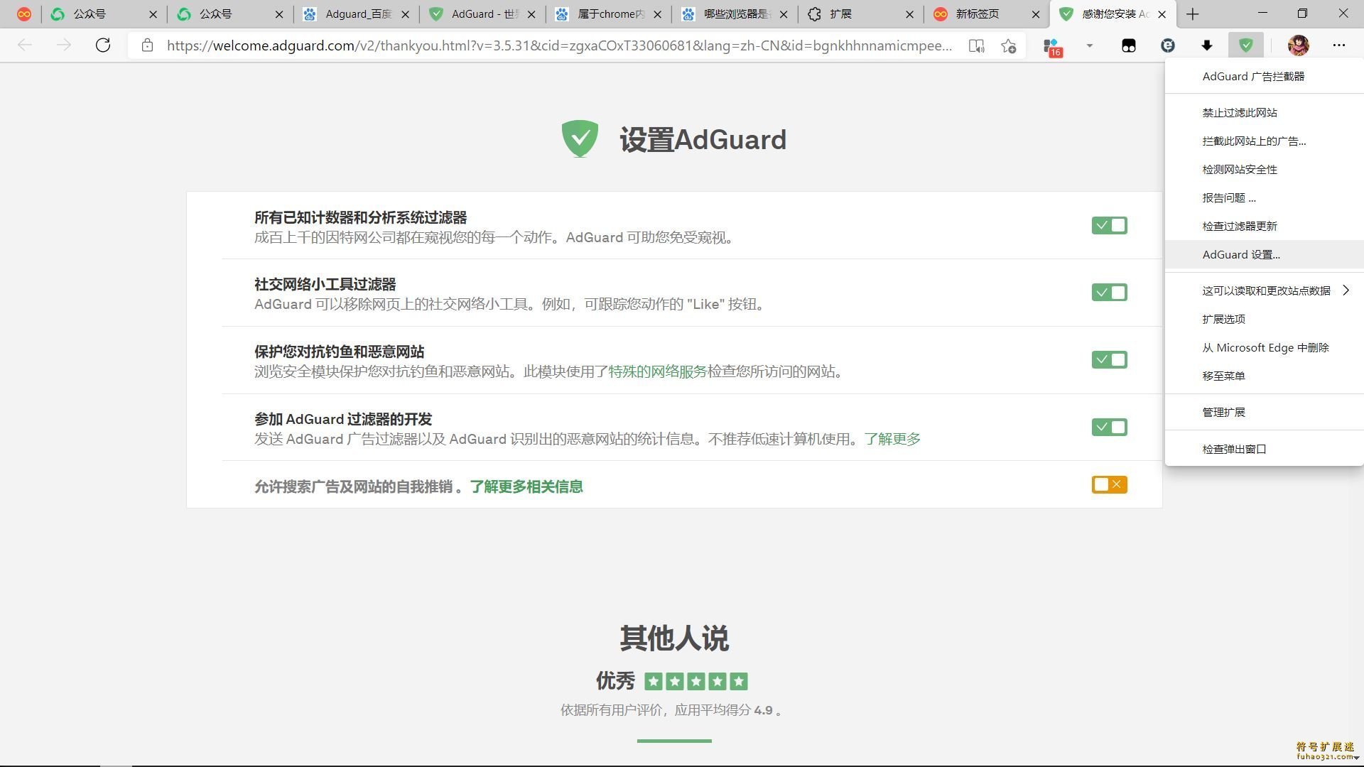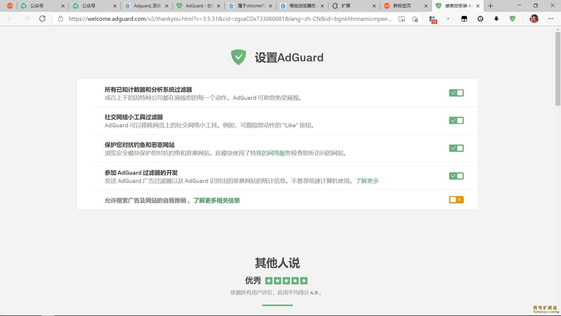 Adguard插件是一款用于屏蔽浏览器广告的插件,最近发现通过设置可以屏蔽优酷,爱奇艺,腾讯视频的广告(仅限于网页端)。