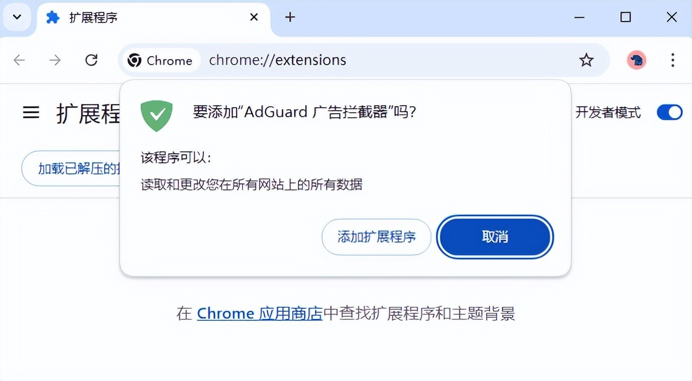5、拖放下载的.crx文件,点击[添加扩展程序]以完成安装