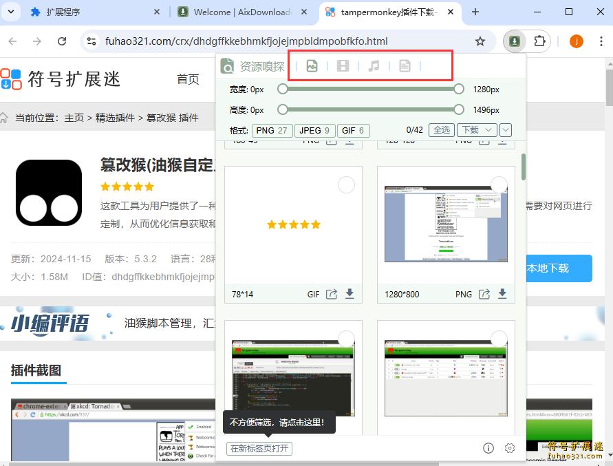 4:我们打开一个有需要下载资源的网页,然后我们点击这个插件的ICO图标