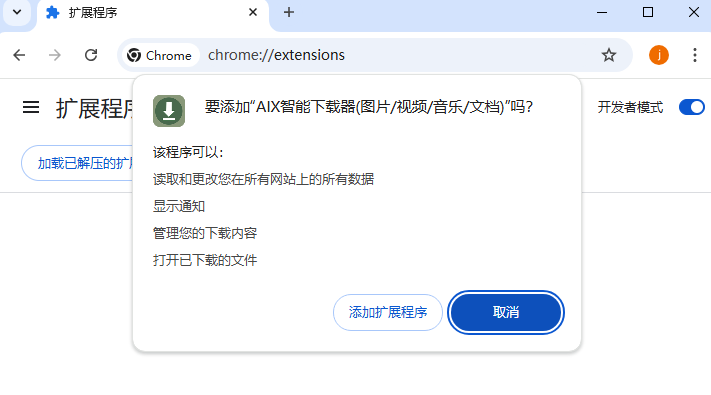 3: 将下载好的CRX文件拖入扩展程序页面,选择“添加扩展程序”进行安装。