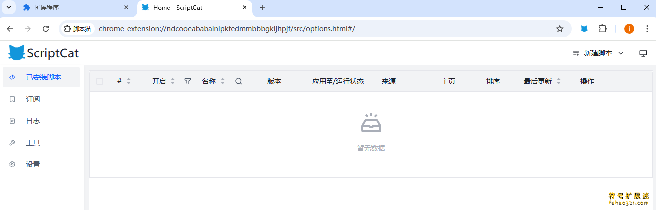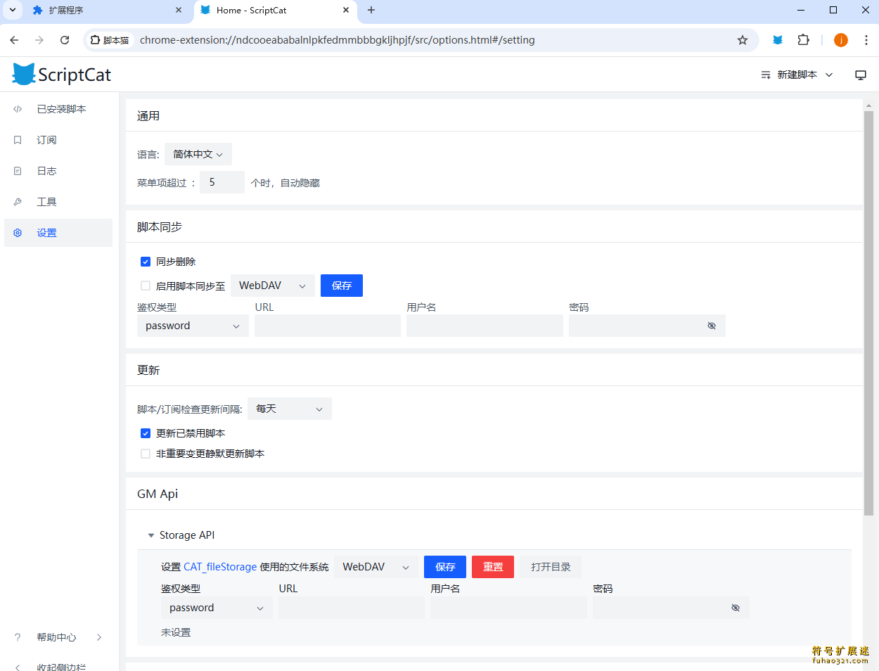 5、点击ScriptCat图标,根据用户需求进入扩展设置界面。