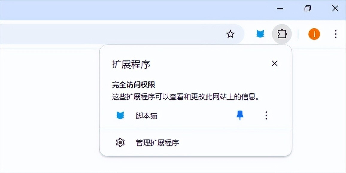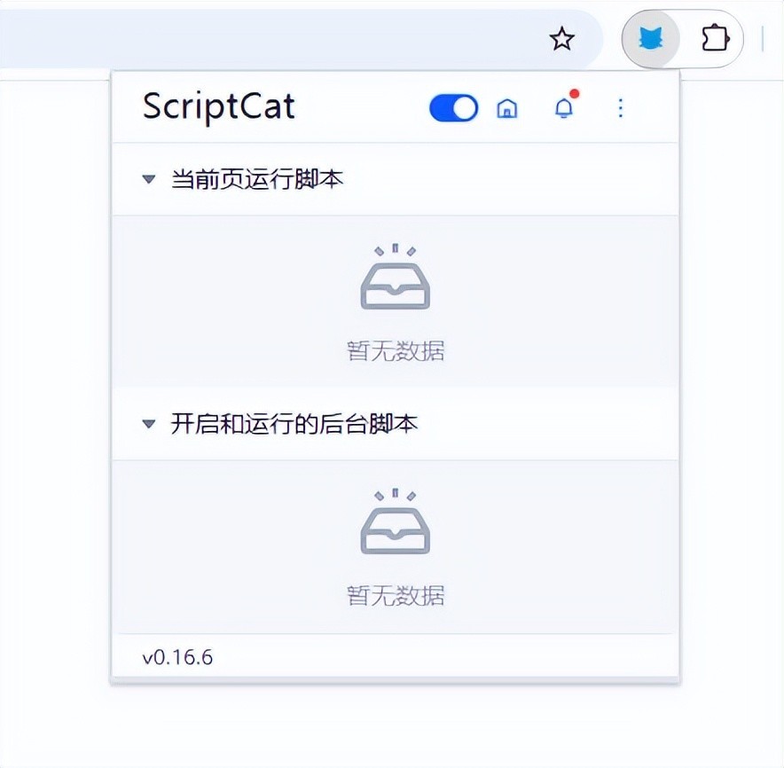 4、返回浏览器界面,观察右上角插件栏确认为绿色或蓝色的ScriptCat图标