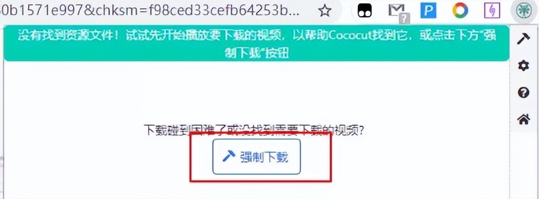 9、如果有视频根本检测无法识别到下载地址,可以使用插件的强制下载功能。这个强制下载功能的原理其实是录制模式,点击强制下载。然后点击确定按钮开始录制,然后回到视频页播放视频。