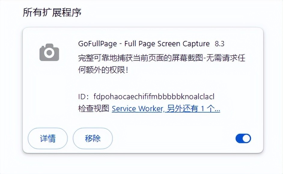 1、我们先下载并安装插件,直接在Crx搜搜 https://www.crxsoso.com/ 搜索插件ID值即可下载。下载 GoFullPage – Full Page Screen Capture 插件ID值:fdpohaocaechififmbbbbbknoalclacl