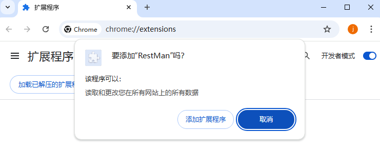 - 等待安装完成,浏览器右上角会出现一个写着 “RestMan” 或类似符号的插件图标,说明插件已经就位啦!