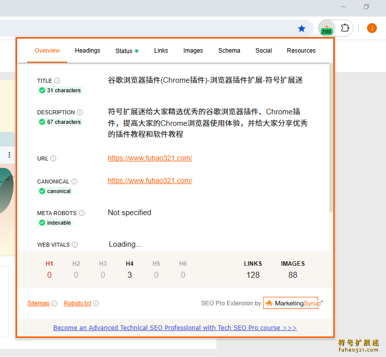 SEO Pro Extension 能帮你检查网页的多个 SEO 相关指标,打开网页后,所有数据都能直接看到。