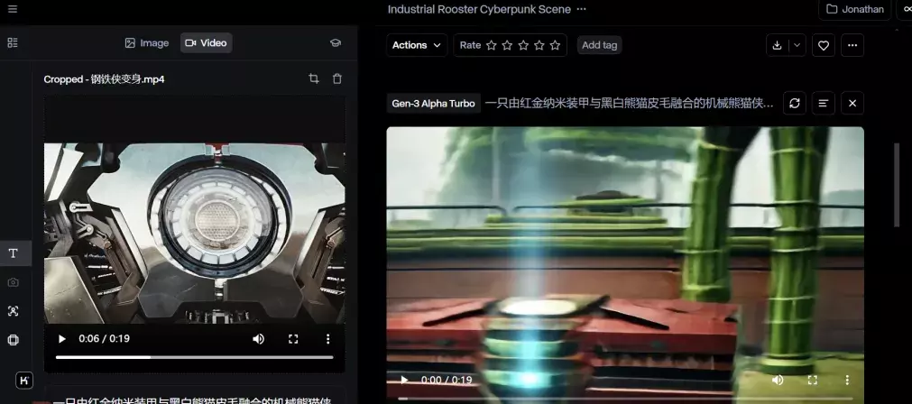 把这些提示词输入到 Runway gen3 中,并上传准备好的素材,就能生成酷炫的特效视频。