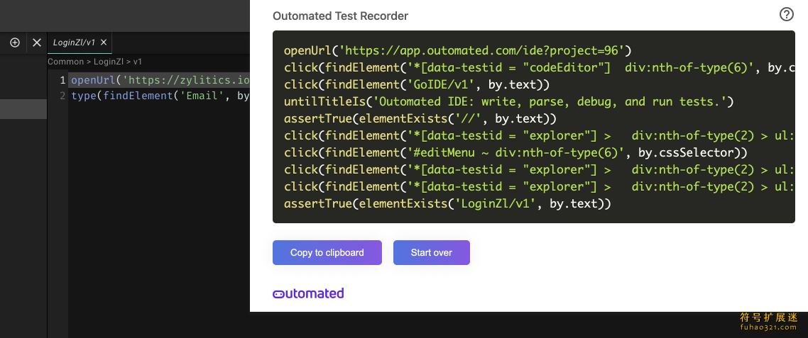 4、要断言某些内容,请右键单击并选择“Outomated Test Recorder”。将出现命令列表。