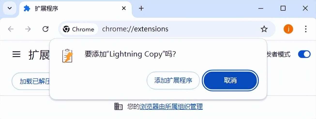 2、开启【开发者模式】。开启后,你会看到一些额外选项,继续进行下一步操作。
