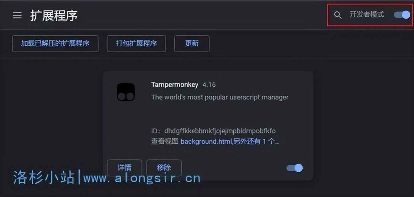 △step2:在扩展程序页面中,我们打开”开发者模式”