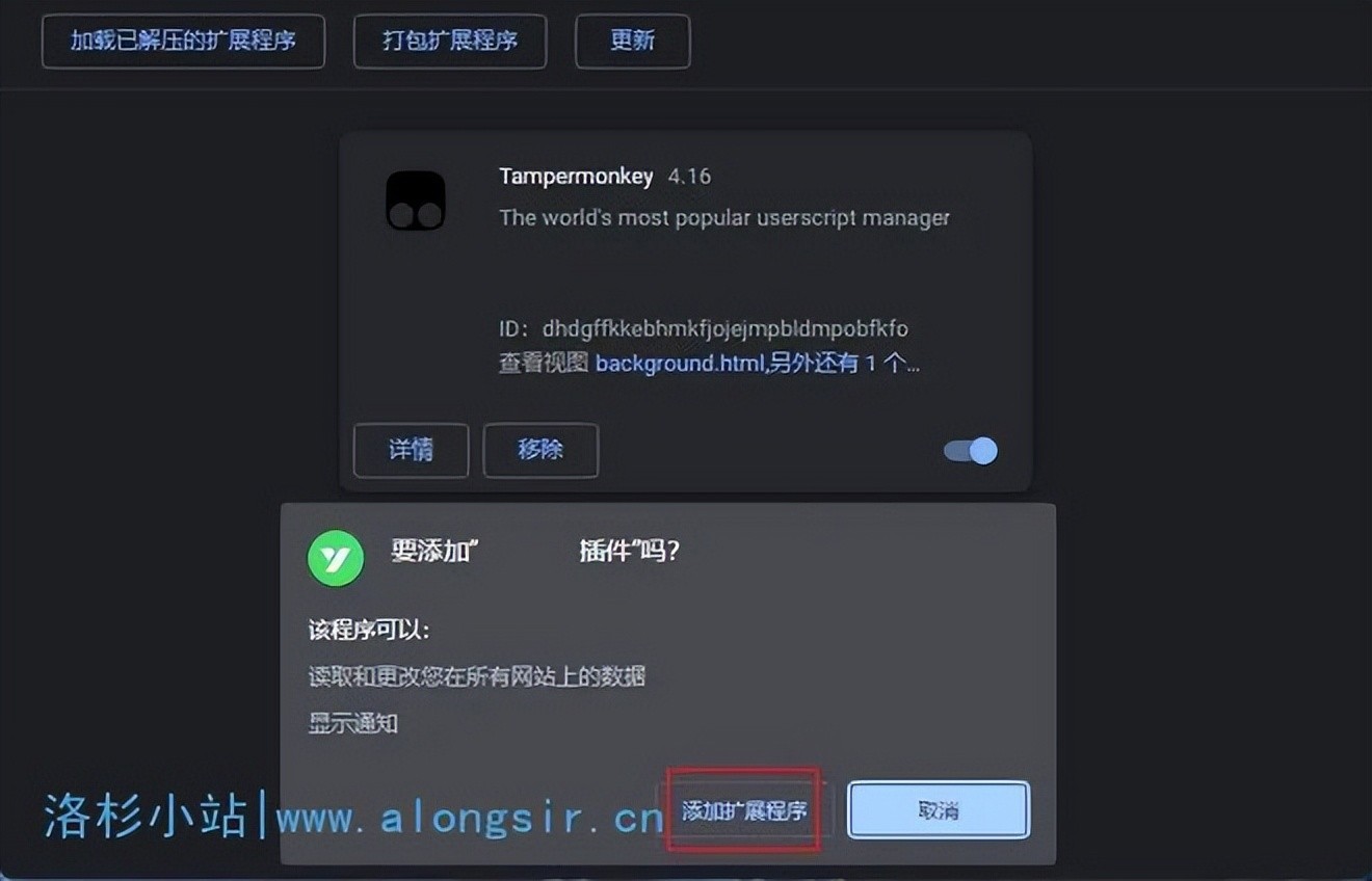 △step4:窗口会有弹窗提示,我们点击”添加扩展程序”