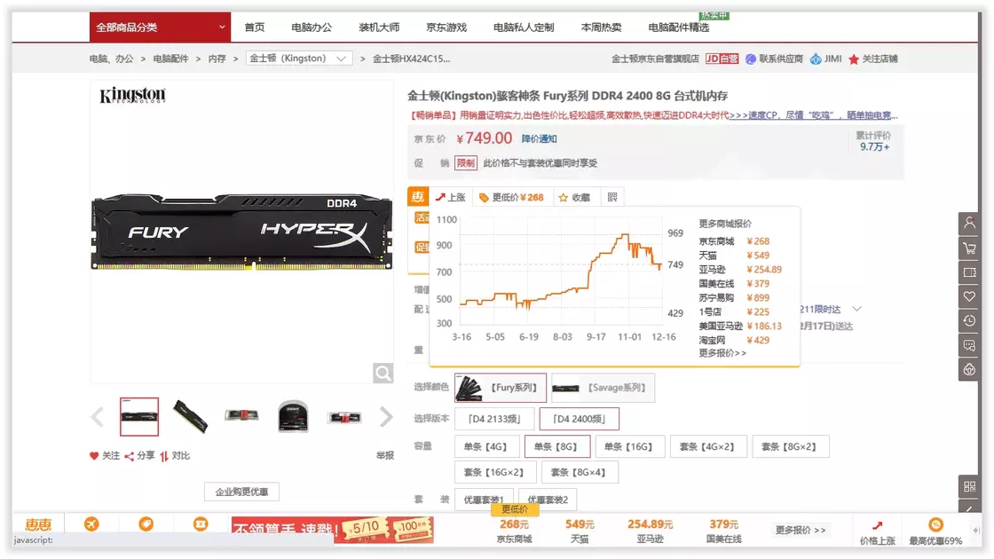 这个是非官方脚本,调用了购物党官方提供的查询脚本,浏览商品页面时,自动比较同款商品在淘宝/京东/亚马逊/当当/苏宁/等百家商城的最低价,提供价格历史、口碑评分等查询信息。