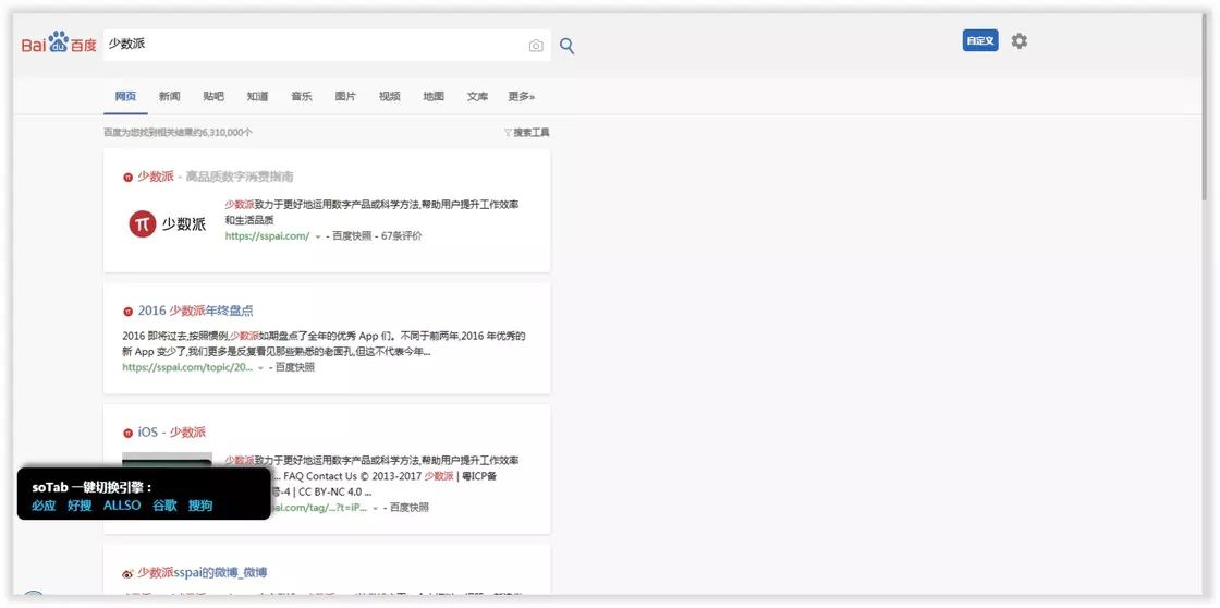 一键切换不同的搜索引擎:搜索引擎一键切换 soTab