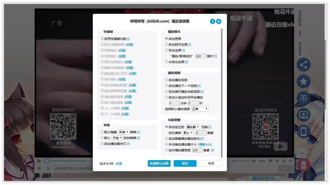B 站播放器设置:哔哩哔哩(bilibili.com)播放器调整