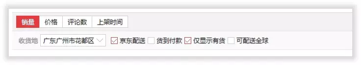 自动为你勾选京东配送、仅显示有货、销量排序:自动京东配送