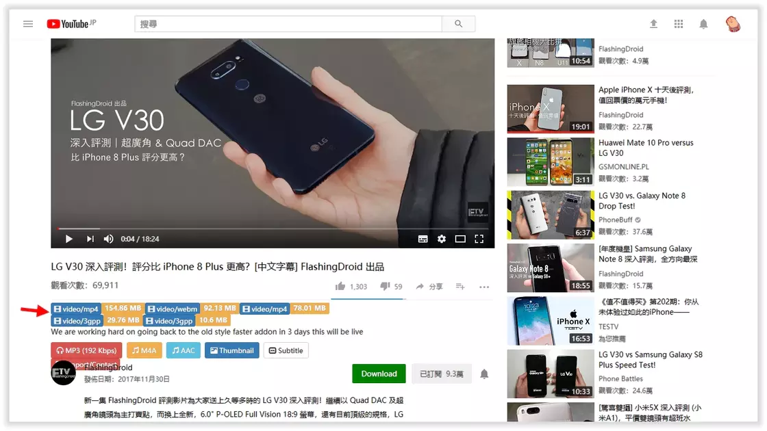 Download YouTube 没有提供前面两款脚本强大的功能,但有更纯粹的下载功能,支持以 MP4、FLV、MP3 格式下载视频。