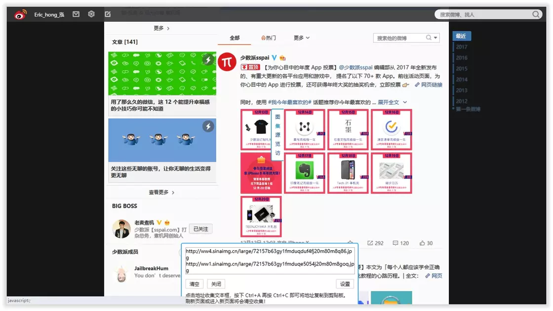 批量收集微博图片地址:Weibo Larger Pics 新浪微博之我要看大图