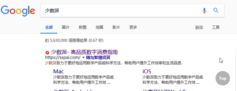 只需移动鼠标即可快速流畅滚动网页页面,同时在页面底部添加了「TOP」返回顶部的按钮。