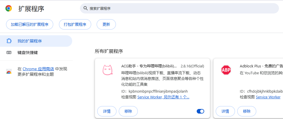 首先,我们可以打开浏览器的扩展管理部分,对已安装扩展进行查看、搜索、删除等操作。