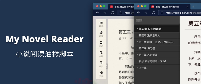 - 还有些扩展例如 Circle、简悦也能提升阅读体验,但术业有专攻,如果是看小说还是推荐这个脚本