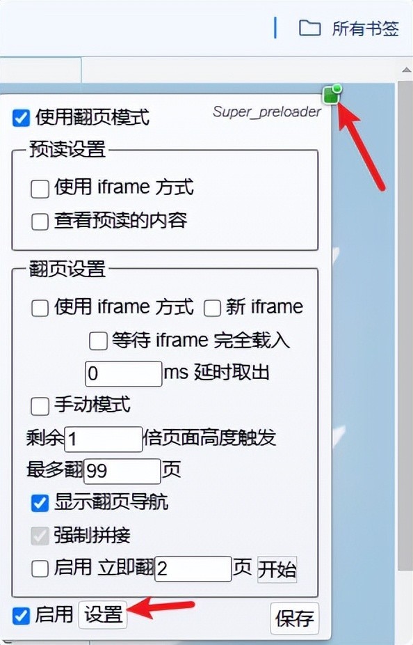 你也可以点击浏览器右上角的浮动绿色方块,进行更多设置:
