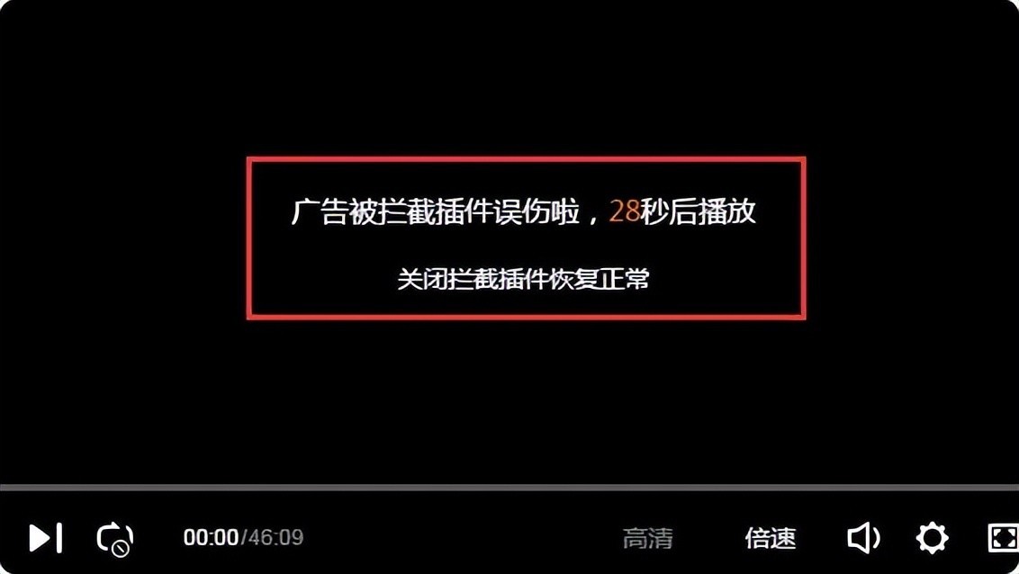 目前,很多屏蔽视频广告的扩展,都只能拦截广告,但广告时间还是在的: