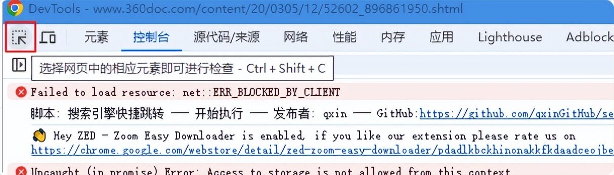 同样的,打开开发者工具,点击左上角的图标(或者快捷键 Ctrl + Shift + C):