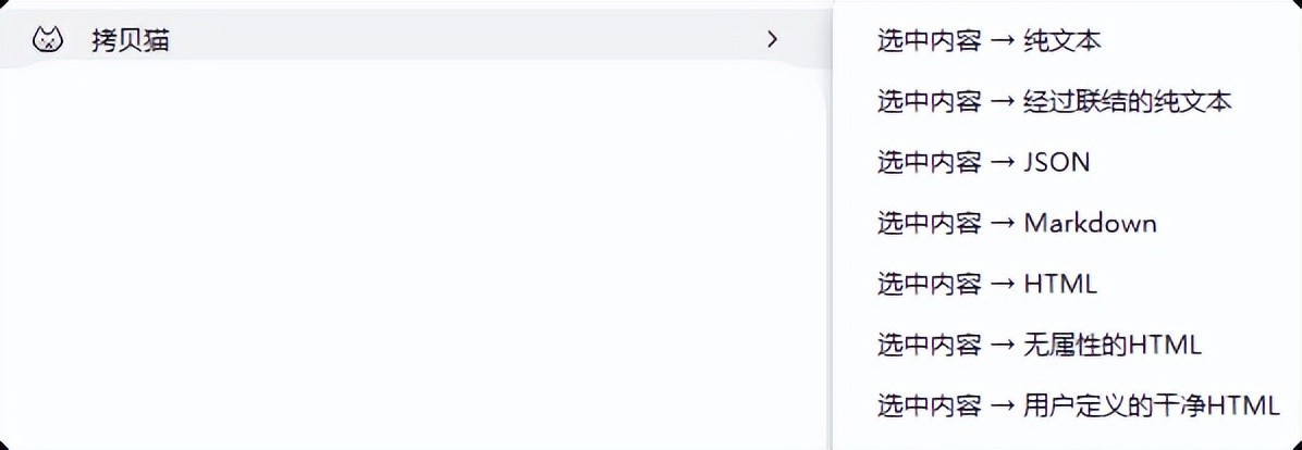 拷贝猫 [12] 支持将复制的内容,转为其他格式,例如:
