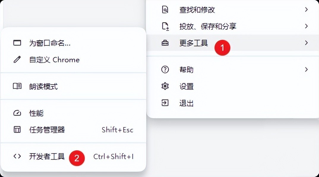 先按下 F12 打开「开发者工具」,或者在浏览器菜单 → 更多工具 → 开发者工具