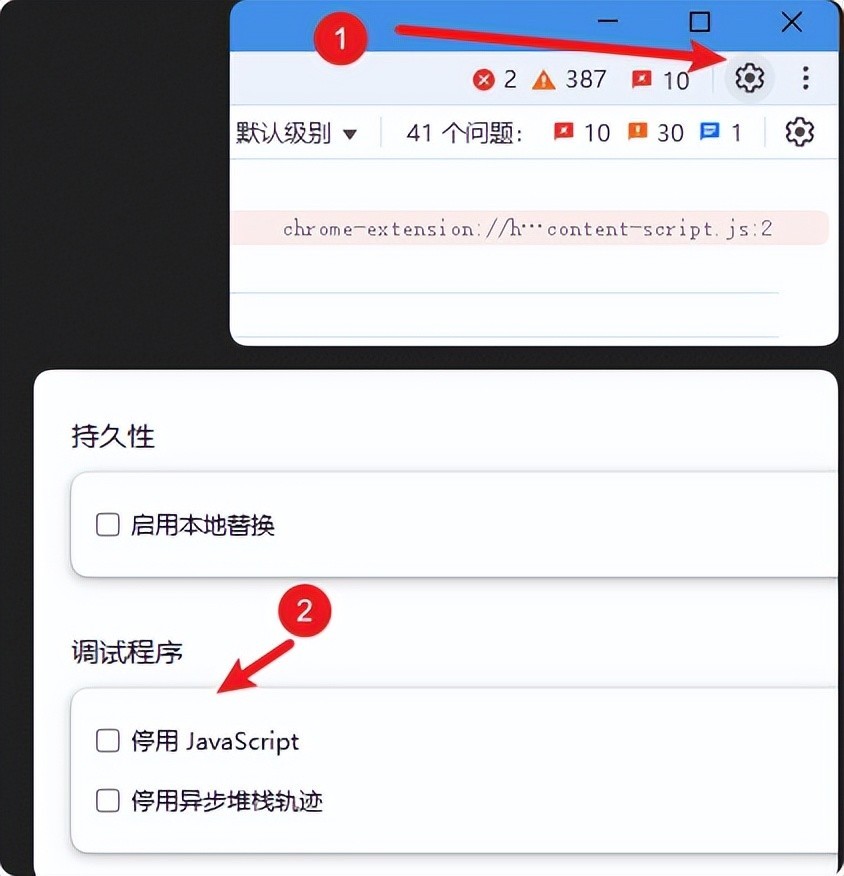 然后点击弹出页面右上角的齿轮按钮,往下找到「停用 JavaScript」,然后勾选上: