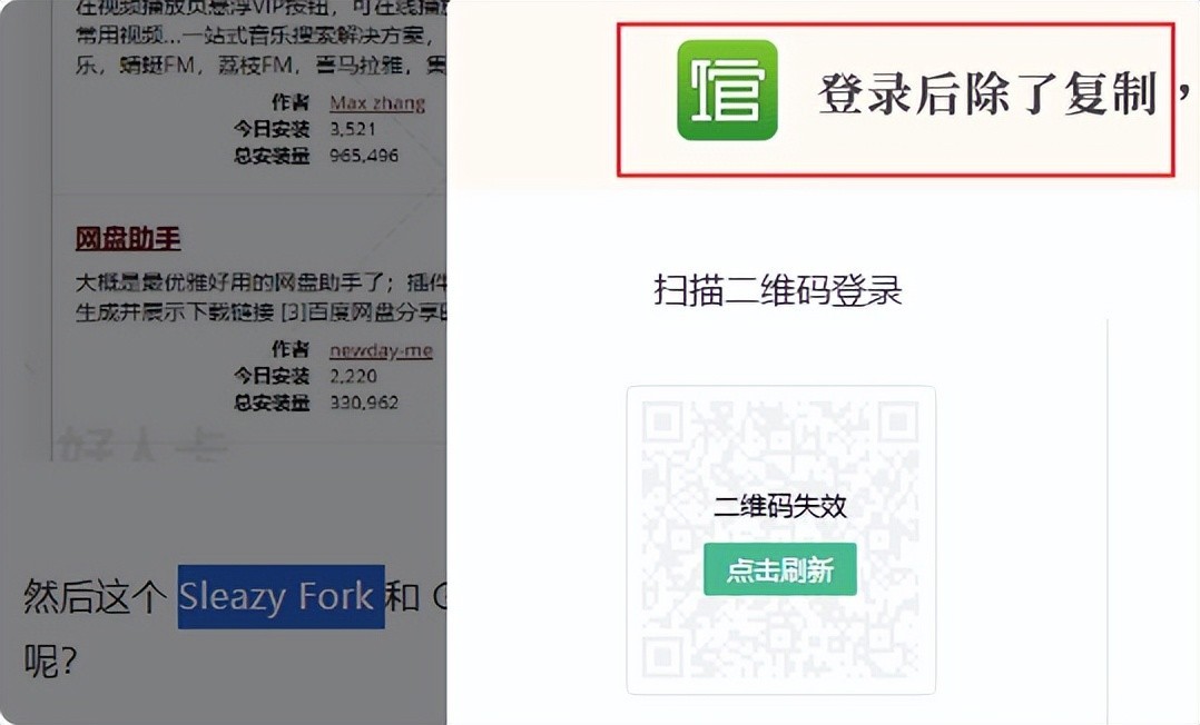 但很多国内的网站,对复制功能做了限制,经常要登录: