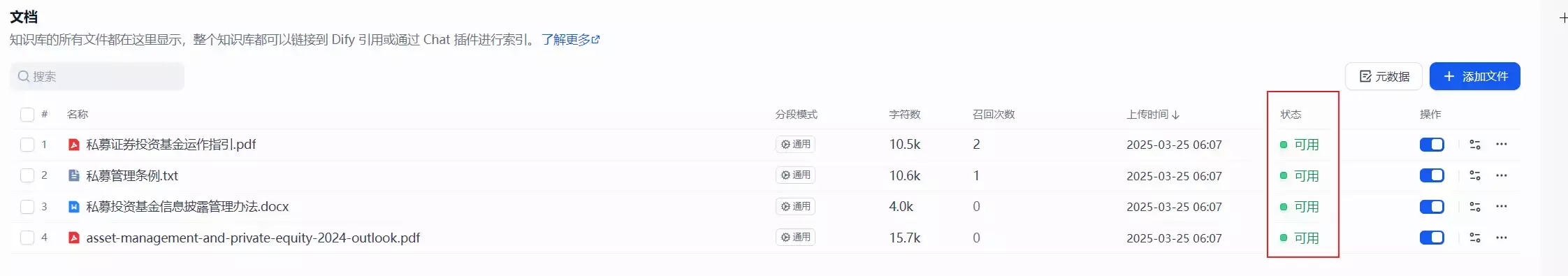 实际操作中,您可以直接将文件拖拽到上传区域,系统会自动开始处理。教程示例中上传了多个私募基金相关文档,其中包含一个较小的文件(仅 100 多个汉字)因无法满足最小分段要求而处理失败。