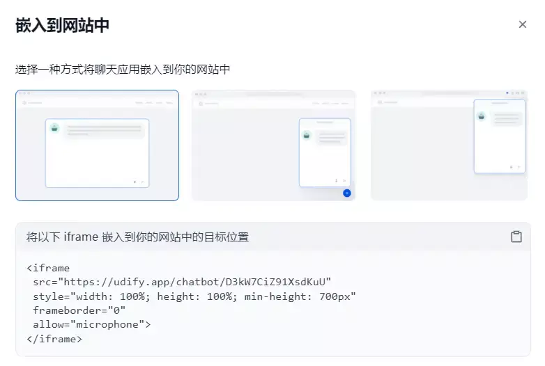 确认无误后,通过『嵌入网站』功能获取部署代码: