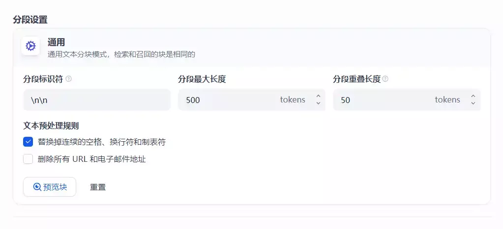 - 修改分段大小(经济模式 500 tokens / 高质量模式 1024 tokens)