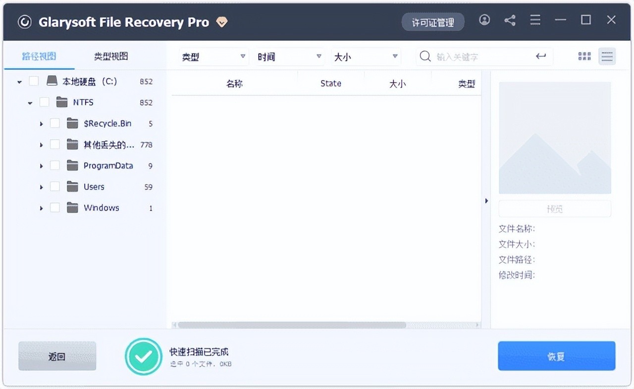除了基本的恢复功能,Glarysoft File Recovery 中文便携破解版还具有快速扫描和深度扫描两种模式,用户可以根据具体需求选择合适的扫描方式。快速扫描适合恢复不久前删除的文件,而深度扫描则能够寻找更复杂情况下丢失的数据,尤其适合对于重要文件的恢复。此外,软件在扫描结果中会详细列出发现的文件信息,包括文件类型、大小和最后修改时间,使得用户能够准确判断哪些文件是需要恢复的。