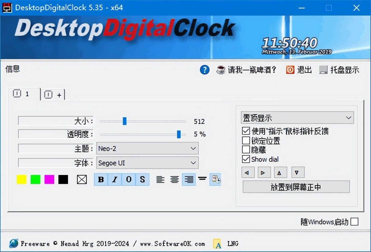 DesktopDigitalClock(桌面数字时钟工具) 多语便携版