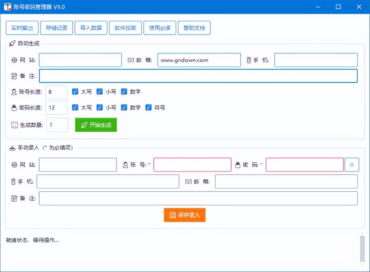 52xiaosage 大佬编写的一款账号密码管理工具,可以随即生成账号密码,或者手动录入。