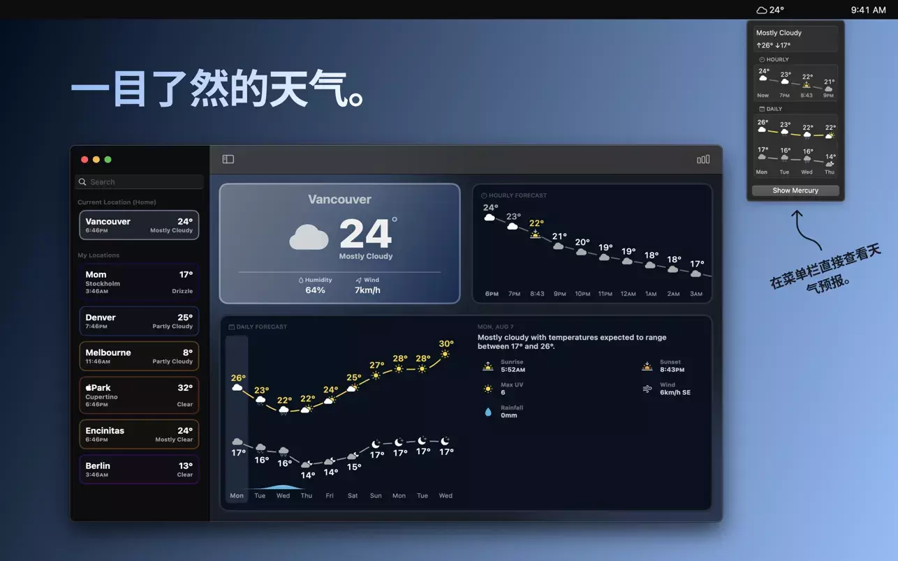 Mercury Weather for Mac 破解版 – 好用的天气提醒助手