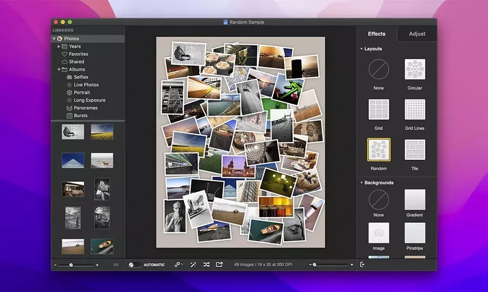 Posterino提供了一个直观的用户界面,可以轻松地拖放和排列您的照片,以创建独特的拼贴设计。您可以自由选择不同的布局,包括随机布局、定制网格和预定义的海报模板。