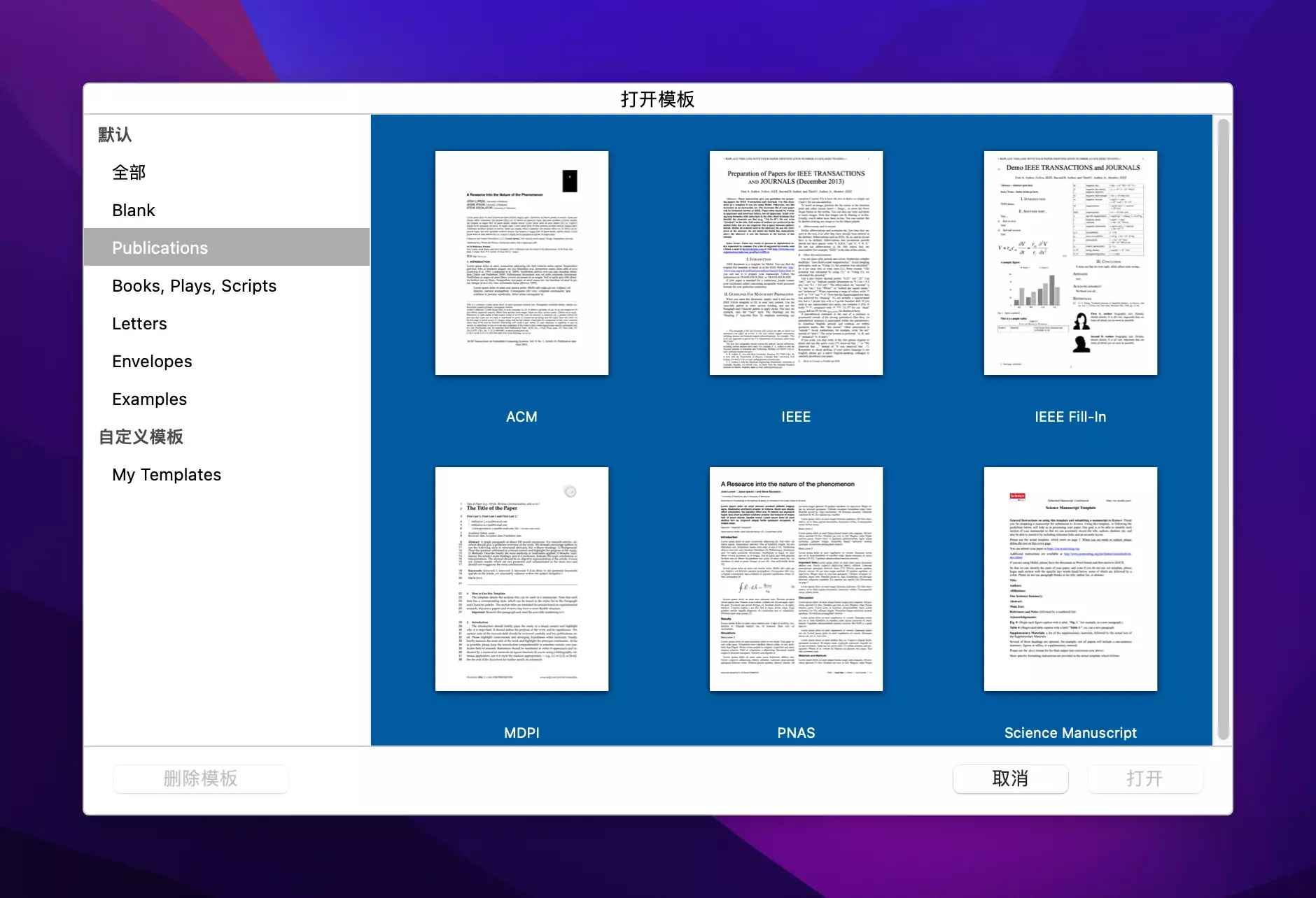- 导入和导出:Mellel支持多种输入和输出格式,包括Microsoft Word、RTF、HTML、EPUB、PDF等等。