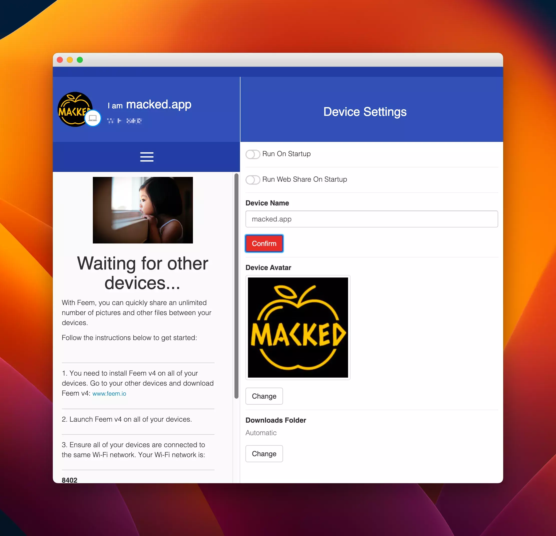 在你的局域网内传输敏感文件,没有云。没有服务器可以入侵。此外,Feem使用TLS对所有本地传输进行加密(就像https://)。