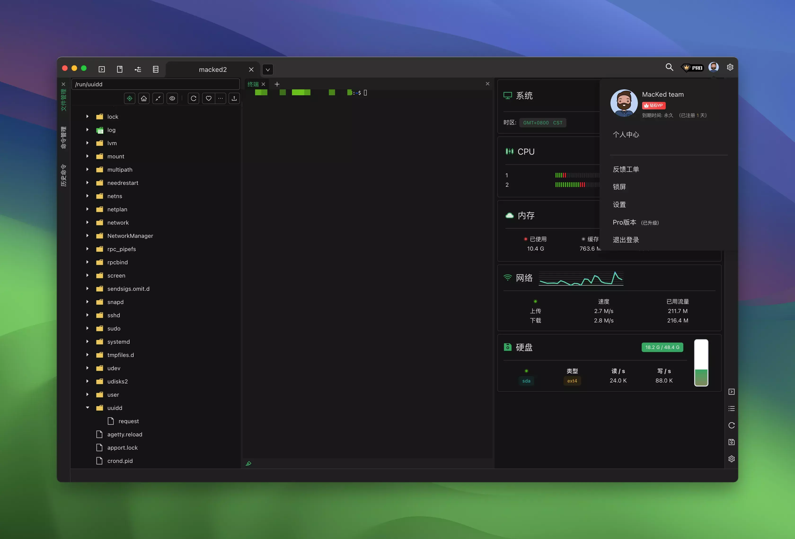 XTerminal不仅是一款优秀的SSH工具,还提供本地控制台和即将推出的开发相关功能,专为编写卓越代码而设计。它提供定制化布局以满足个性化需求,同时具备图表化实时系统监控,让用户清晰掌握系统状态。它的操作简便,无需特殊学习,即可轻松进行文件编辑、删除、新增、上传下载和移动等操作。