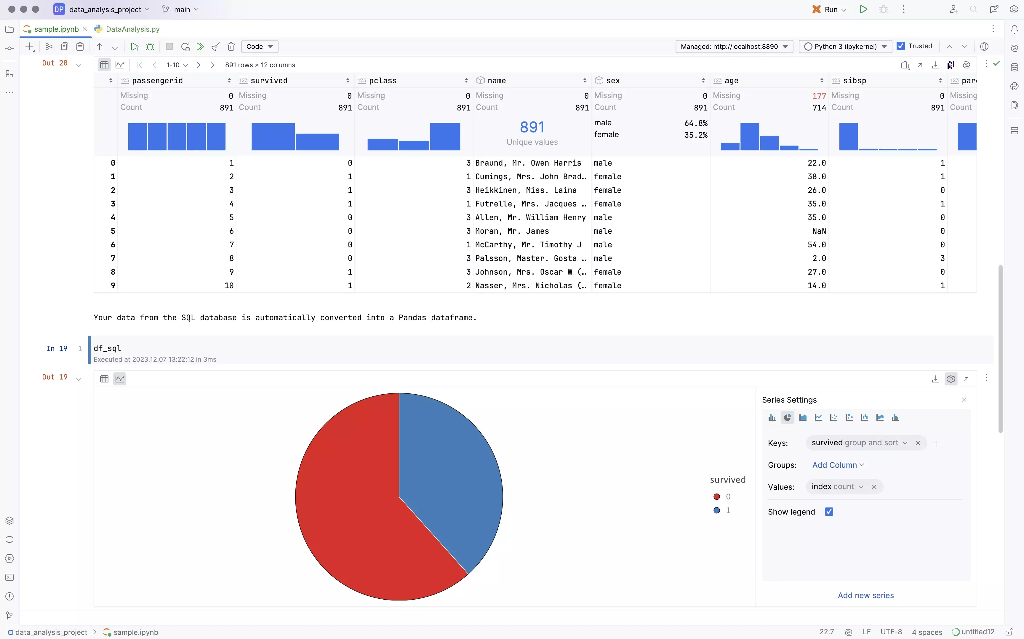 DataSpell 的用户界面专为更有效地处理数据而设计,提供低代码功能和易于访问的关键功能。它具有对 SQL 单元的支持、可快速访问描述性统计数据的交互式表、无代码图表可视化和 AI Assistant 等 – 这些功能旨在加快数据操作和分析。