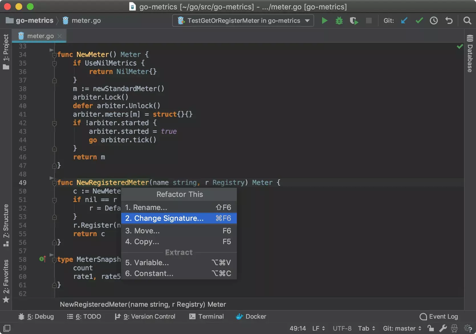 探索和理解团队、遗留或外来项目需要花费大量时间和精力。 GoLand 代码导航可以帮助您快速切换至被屏蔽的方法、实现、用法、声明,或通过类型实现的接口。 在类型、文件或任何其他符号之间跳转,或查找其用法,并借助方便的分组按用法类型对它们进行检查。