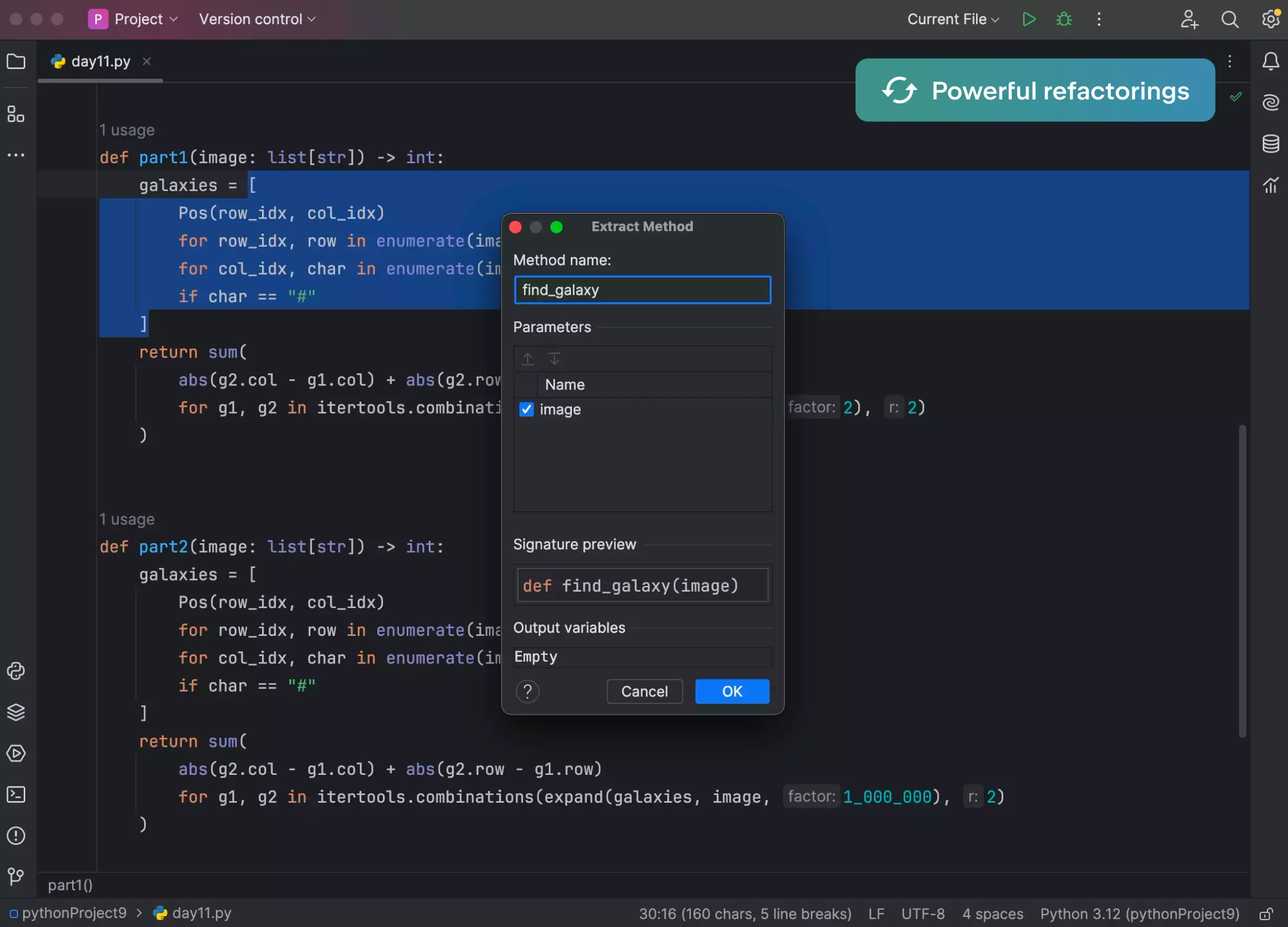 编写整洁、易维护的代码,而 IDE 将利用 PEP8 检查与集成的 Black 格式化程序、测试辅助、智能重构和大量检查帮助您控制质量。